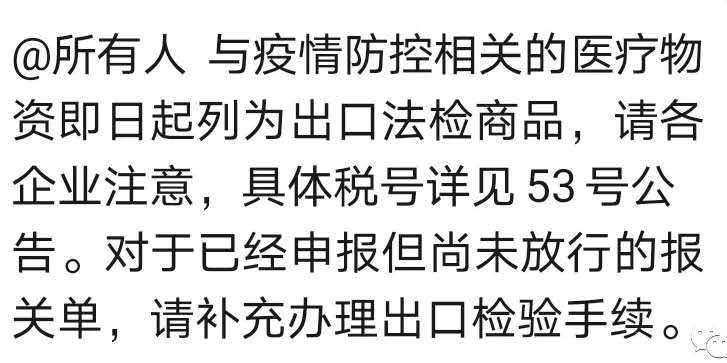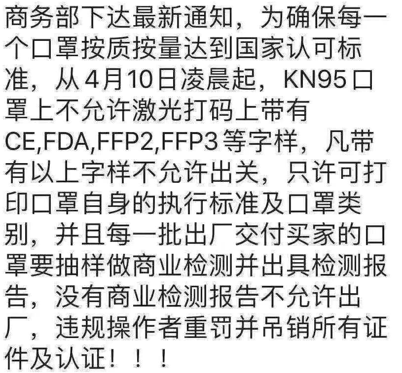 4月10日,海关总署发布了2020年第53号公告,决定对医用口罩等11类商品实施出口法定检验,立刻引起广大出口企业关注。4月10日当天,青岛海关12360热线接到企业相关咨询电话1000余个,创历史记录。部分海关关员都称自己的电话被打爆了…… 所有出口口罩都是法检的吗? 为加强医疗物资出口质量监管,2020年4月10日海关总署发布第53号公告, 对医用口罩实施出口商品检验。 敲黑板! 重要的事情说三遍,只有上述HS编码项下医用、医用、医用商品才实施出口法检,非医用不实施出口法定检验。 医用口罩出口属法检商品,报关前是否需要申请电子底账? 与其它出口法检商品不同,此次新增纳入《法检目录》的11类医疗物资,在出口前不需要申请电子底账,正常向海关报关,报关时不需提供电子底账号。当然,也不实施产地检验,无需在产地报检。 医用口罩出口时,报关需提交哪些随附单据? 根据《医疗器械分类目录》(国家食品药品监督管理总局公告 2017年第104号),医用口罩属二类医疗器械。报关时需按照《商务部 海关总署 国家药品监督管理局关于有序开展医疗物资出口的公告》(2020年第5号)要求,提供医疗器械产品注册证和出口医疗物资声明。 非医用口罩是否属于出口法定检验商品?报关时有什么特殊要求? 非医用口罩不属于出口法定检验商品,报关时不需要提供医疗器械产品注册证及质量安全承诺声明,出口企业应如实申报。 出口的口罩是医用口罩,但不是给医疗机构使用,而是供企业员工或消费者使用的,是否可以申报为“非医用”? 不可以。确定是否为医用口罩时,是依据商品本身的属性,而不是最终的用途。请出口企业重点关注,避免因不了解相关要求而申报错误。 企业在出口时,如何区分医用和非医用口罩? 可以根据我国及国外口罩相关标准进行区分: 国家或地区 名称 技术法规和标准名称 中国 医用 口罩 YY/T0969-2013 《一次性使用医用口罩》 YY0469-2011 《医用外科口罩》 GB19083-2010 《医用防护口罩》 非医用口罩 GB/T32610-2016 《日常防护型口罩》 GB2626-2006《自吸过滤式防颗粒物呼吸器》 美国 医用 口罩 ASTM F2100:19 《医用口罩材料性能标准规范》 非医用口罩 CFR 42-84-1995《NIOSH颗粒物防护口罩的选择和使用指南》 欧盟 医用 口罩 EN 14683:2014《医用面罩 要求和试验方法》 非医用口罩 EN 149-2001+A1:2009 《呼吸保护装置 颗粒防护用过滤半遮罩 要求、测试和标记》 日本 医用 口罩 ASTM F2100-19 《医用口罩材料性能标准规范 的Level 2 和level 3》 EN 14683:2014 《医用面罩. 要求和试验方法》 非医用口罩 JIS T 8151:2018 《防尘口罩》 日本卫生材料工业联合会 JHPIA :《口罩展示和宣传的自愿标准》 日本卫生材料工业联合会 JHPIA :《口罩卫生安全—卫生自愿标准》 澳大 利亚 医用 口罩 AS 4381:2015 《用于卫生保健的一次性口罩》 非医用口罩 AS/NZS 1716:2012 《呼吸保护装置》 AS/NZS 1715:2009 《呼吸保护设备的选择 使用和维护》 韩国 医用 口罩 MFDS notice No.2015-69 保健用口罩标准规范指南 KS K ISO 22609:2018 《抗传染病防护服 医用口罩 合成血液抗渗透的试验方法(确定容量,水平注射)》 非医用口罩 KS M 6673:2008 《防尘口罩》 海关总署商检司将不定期更新部分国家或地区防疫物资技术法规和标准,目前已更新至第三版,链接为:http://sjs.customs.gov.cn/sjs/zcfg56/2951967/index.html。 医用口罩 友情提示 符合GB2626标准要求的KN90、KN95、KN100、KP90、KP95、KP100等系列口罩,均属非医用口罩;带呼吸阀的口罩也属非医用口罩。NIOSH认证的N95口罩不等于医用防护口罩。 详细区分医用非医用口罩,可见链接:《解读¦如何区分医用非医用口罩》,另外海关总署商检司会组织人员,继续研究防护服、护目镜等商品关于医用和非医用的解读并发布,敬请期待。 医用口罩出口时,在口岸检验的内容有哪些? 《医疗器械监督管理条例》第四十四条规定“出口医疗器械的企业应当保证其出口的医疗器械符合进口国(地区)的要求”。 《商品检验法》第六条规定“必须实施的进出口商品检验,是指确定列入目录的进出口商品是否符合国家技术规范的强制性要求的合格评定活动。合格评定程序包括:抽样、检验和检查;评估、验证和合格保证;注册、认可和批准以及各项的组合。 医用口罩出口时,海关根据风控指令要求实施现场合格评定: a.验证实货是否与医疗器械注册证一致; b.检查商品包装、标识、品名、数量以及是否冒用、伪瞒报等; c.对企业提交的质量安全承诺书(合格保证)或检测报告进行评定; d.检验商品外观质量检验; e.抽样送实验室对商品的内在质量进行检测; f.………… 出口双边协议国家医用物资有什么要求? 按照中国和国外政府签订的双边协议,目前对出口至下面4个国家的口罩,需申请实施装运前检验。符合装运前检验范围的,仍按照之前出口法检商品要求实施产地检验+口岸监装,并由海关出具装运前检验证书。 国家 装运前检验范围 塞拉利昂 每批次价值在2000美元以上的贸易性质商品 埃塞俄比亚 每批次价值在2000美元以上的贸易性质商品 伊朗 《出入境检验检疫机构实施检验检疫的进出境产品目录》中第25-29、31-97章,海关监管条件为B,检验检疫类别为N的所列产品。 也门 《商品名称及编码协调制度的国际公约》(HS编码)中第25至29章和第31至97章的产品。 出口口罩时,应关注国外哪些准入要求? 不同国家对进口口罩