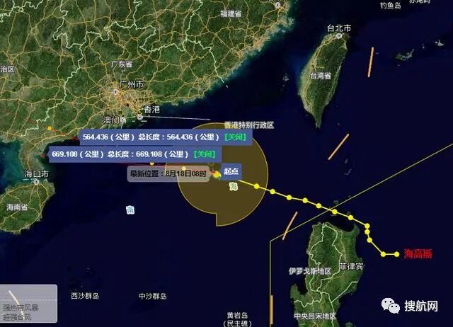 今年第7号台风“海高斯”(热带风暴级)已经于今早8时在南海东北部海面上生成,中心最大风力为8级(18米/秒),位于距离广东省吴川市偏东方向约660公里的南海海面上。