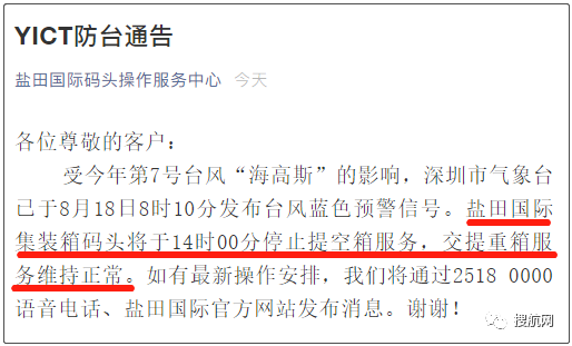 截止今日,华南地区已有部分码头发布通知,暂停部分服务。