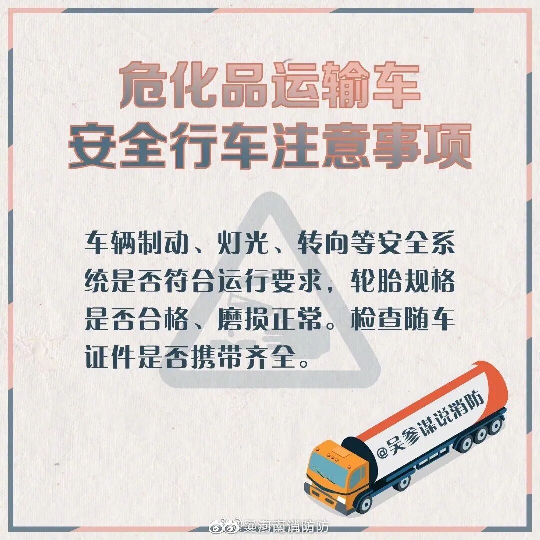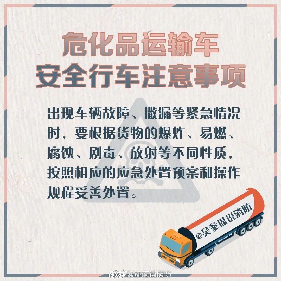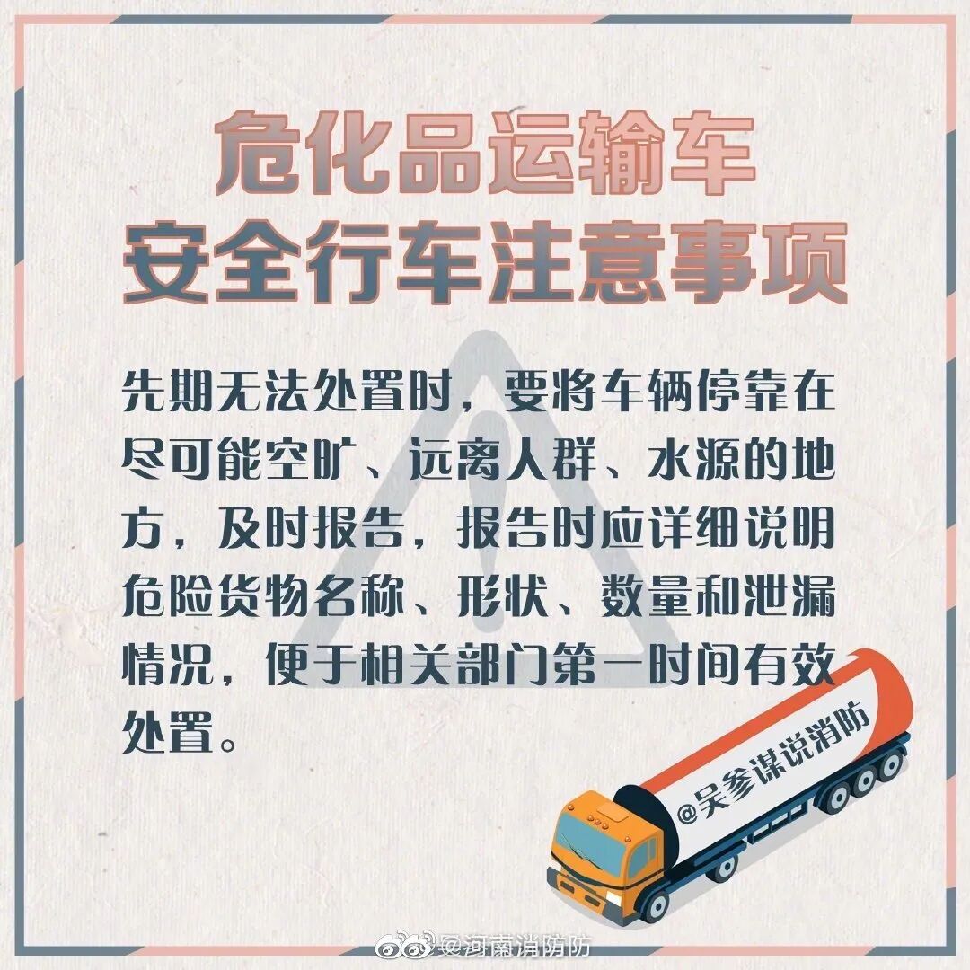 危险品运输是特种运输的一种,一般只有经过国家相关职能部门严格审核,并且拥有能保证安全运输危险货物的相应设施设备,才能有资格进行危险品运输。运输过程中需要注意哪些安全事项呢?戳图!